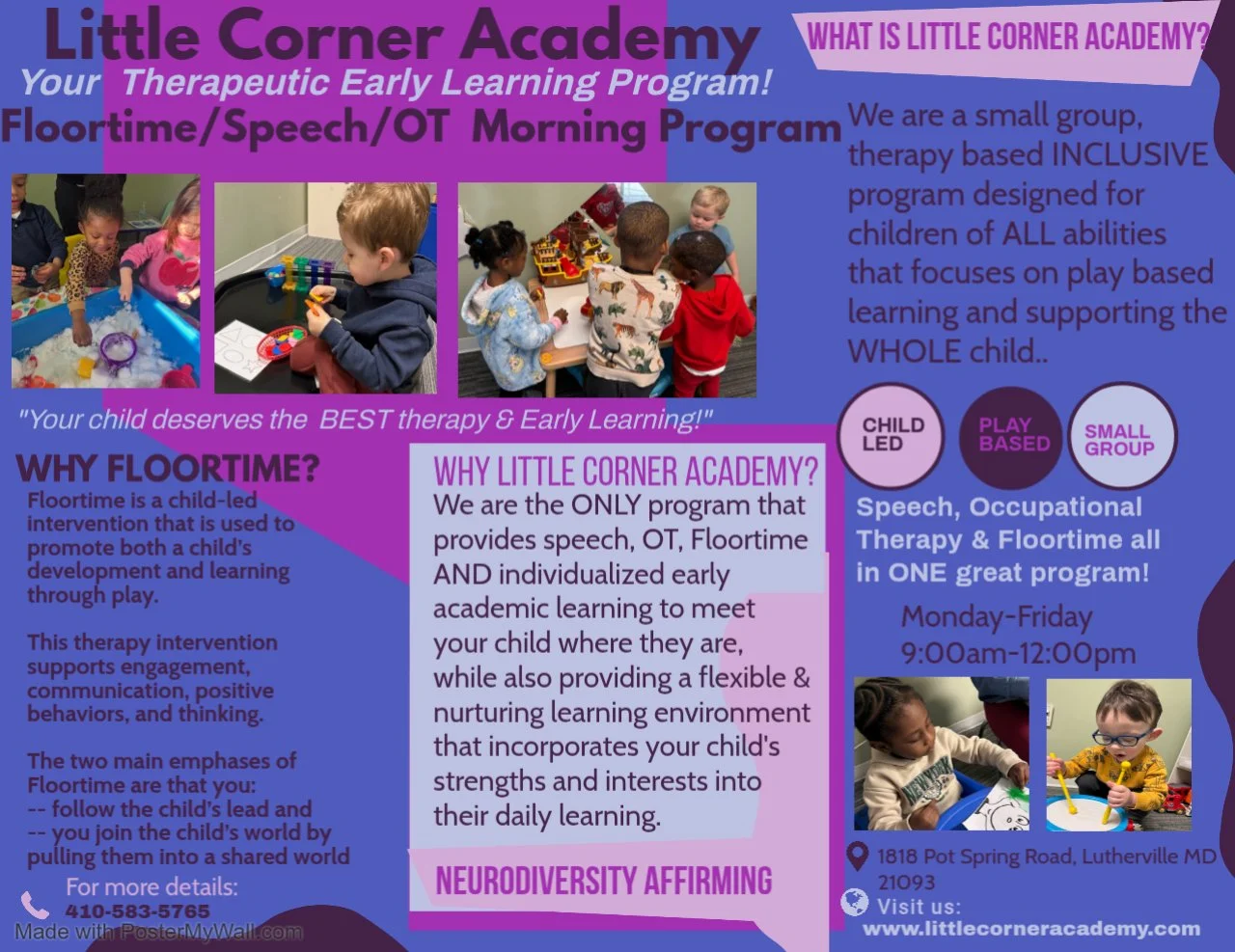 We are now enrolling for our Fall 2026-2027 program! If you are looking for a small group program that is neurodiversity affirming, individualizes learning for your child, offers 1:1 learning opportunities that is play based, AND has speech and OT daily for your little one, we are the place for you!